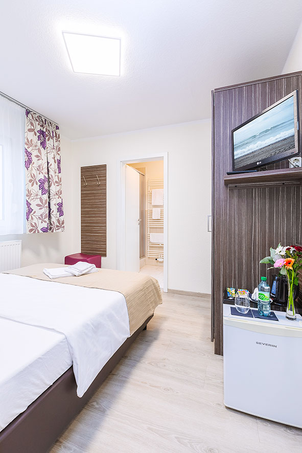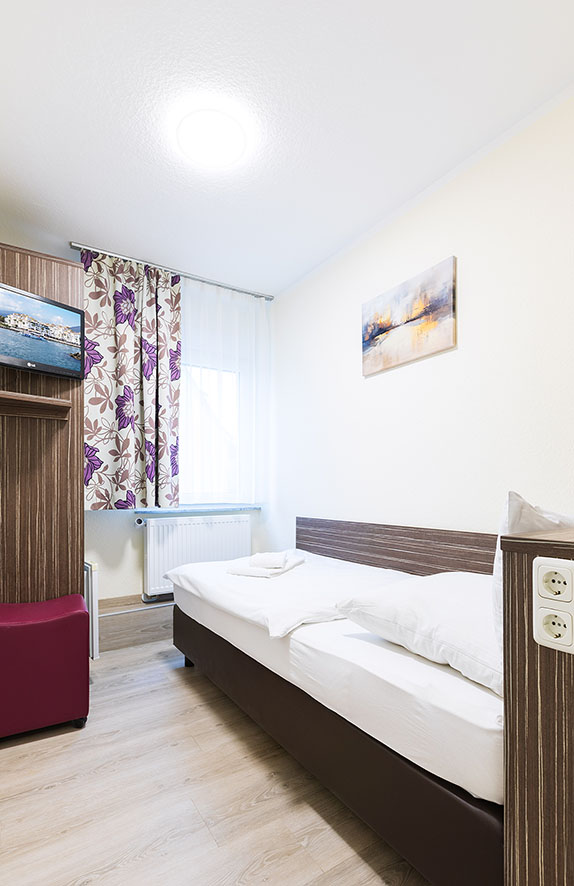 Entspannen Sie stilvoll in unserem komfortablem Einzelzimmer mit eigenem Bad und genießen Sie moderne Annehmlichkeiten wie kostenloses WLAN und Fernsehen.